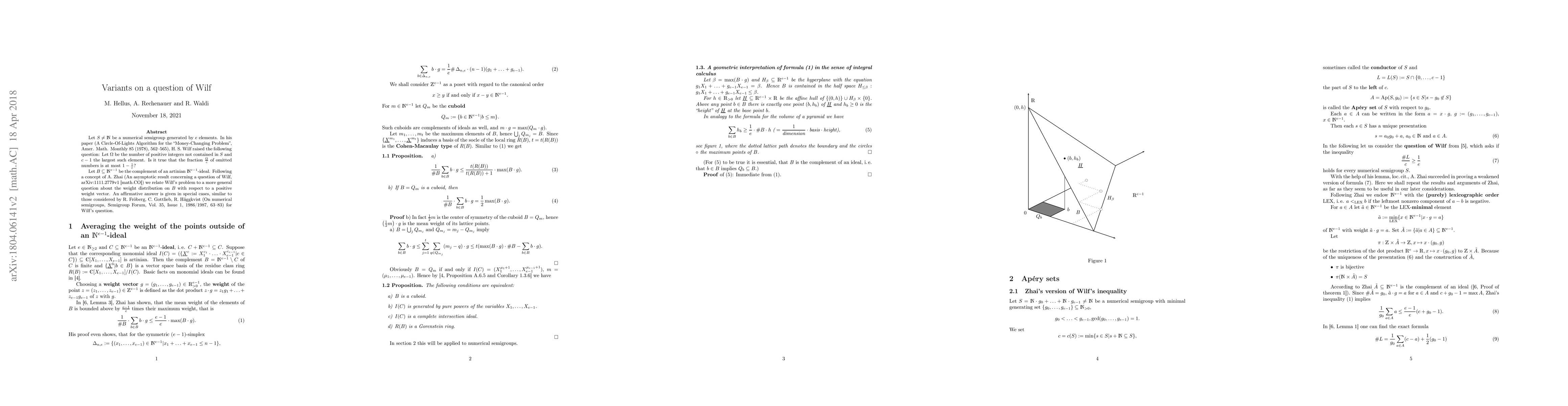 This paper addresses Wilf's question regarding the fraction of omitted numbers in a numerical semigroup, providing affirmative answers in specific cases. It connects Wilf's problem to a broader question about weight distribution on the complement of an Artinian ideal in (mathbb{N}^{e-1}), building on previous work by Fröberg, Gottlieb, and Häggkvist.