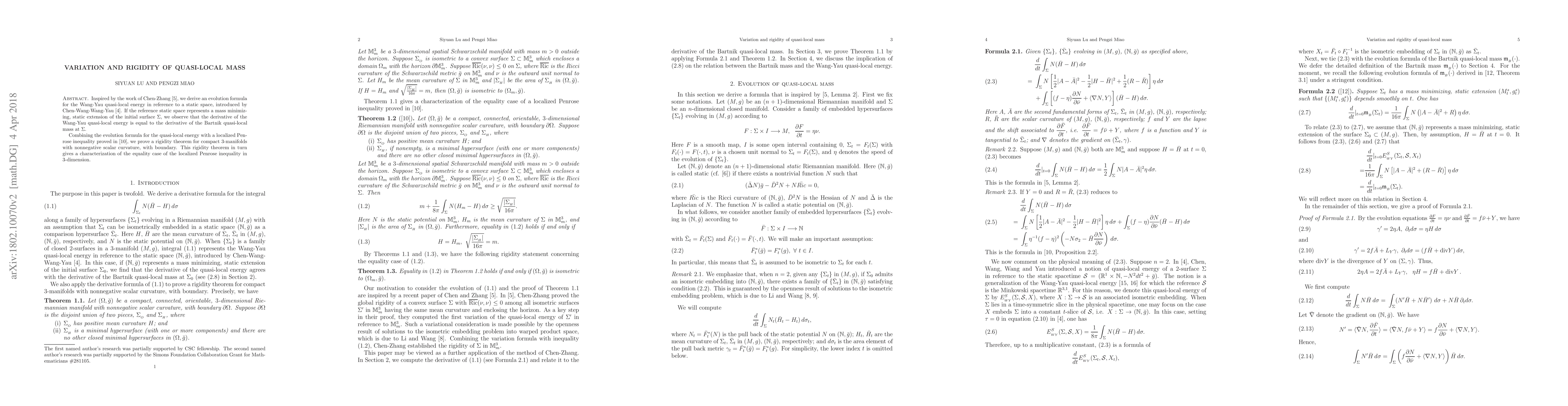 Inspired by the work of Chen-Zhang \cite{Chen-Zhang}, we derive an evolution formula for the Wang-Yau quasi-local energy in reference to a static space, introduced by Chen-Wang-Wang-Yau \cite{CWWY}. If the reference static space represents a mass minimizing, static extension of the initial surface $\Sigma$, we observe that the derivative of the Wang-Yau quasi-local energy is equal to the derivative of the Bartnik quasi-local mass at $\Sigma$. Combining the evolution formula for the quasi-local energy with a localized Penrose inequality proved in \cite{Lu-Miao}, we prove a rigidity theorem for compact $3$-manifolds with nonnegative scalar curvature, with boundary. This rigidity theorem in turn gives a characterization of the equality case of the localized Penrose inequality in $3$-dimension.