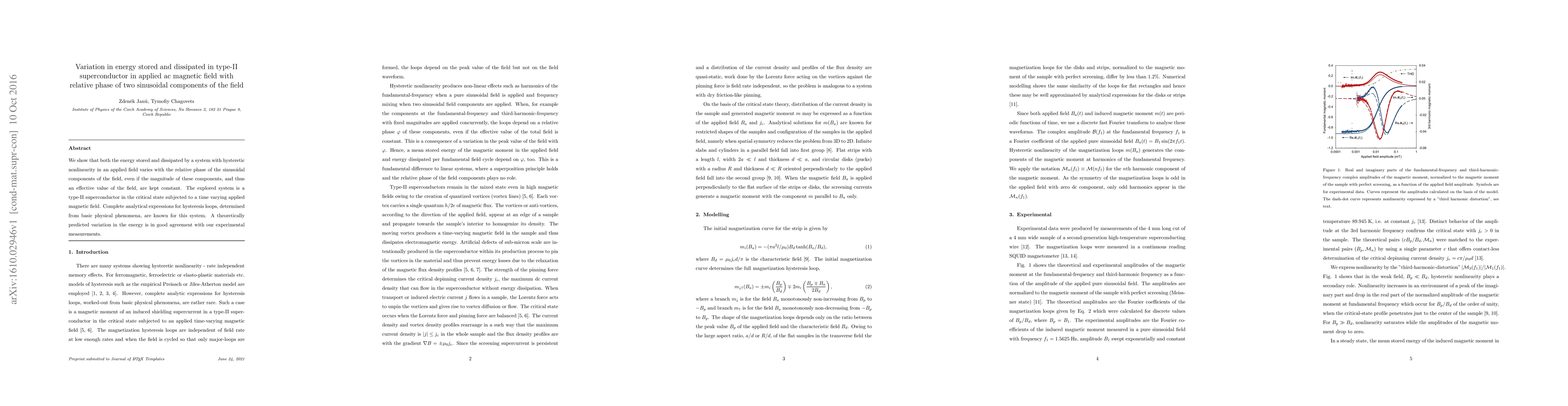 Researchers studied how energy stored and dissipated in type-II superconductors changes with the relative phase of a changing magnetic field, finding that this variation affects both stored and dissipated energy.