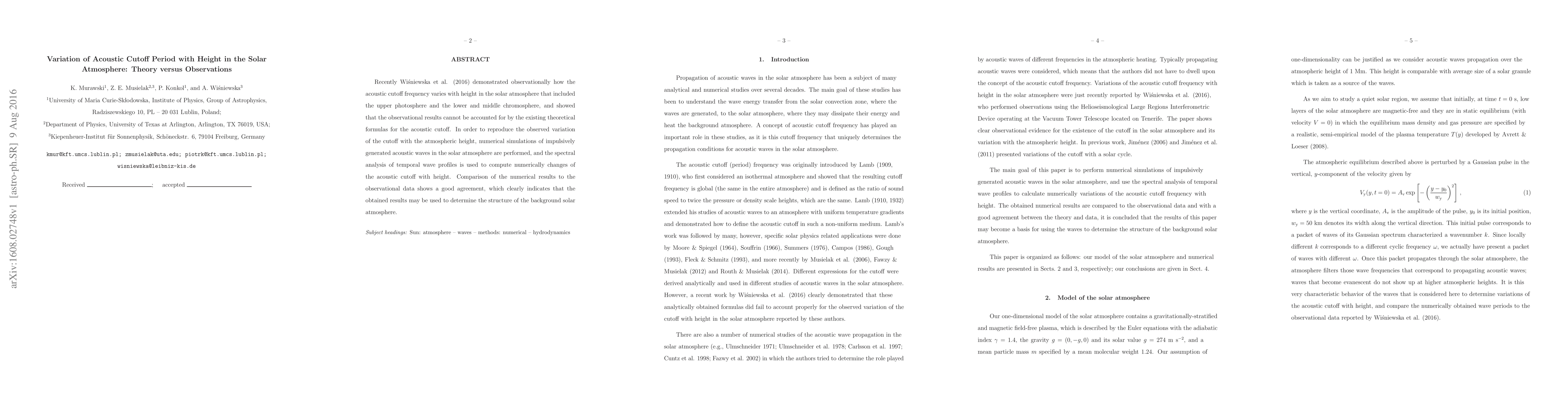 This paper investigates the variation of acoustic cutoff frequency with height in the solar atmosphere, comparing observational data from Wiśniewska et al. with theoretical models. Numerical simulations show good agreement with observations, suggesting improved methods for determining the solar atmosphere's structure.