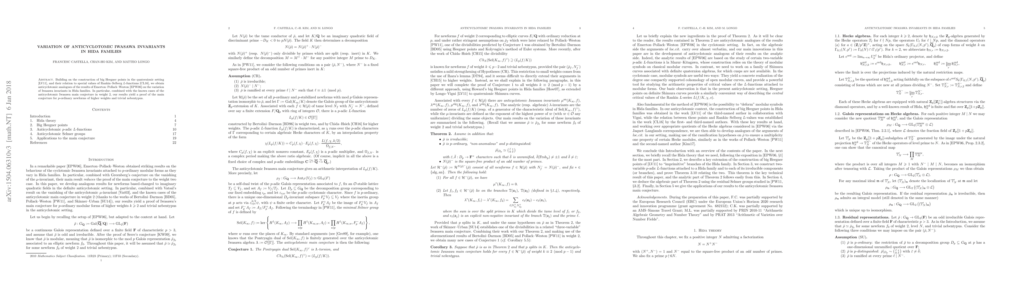 This paper extends Emerton-Pollack-Weston's results on Iwasawa invariants in Hida families to anticyclotomic settings via big Heegner points and Rankin-Selberg $L$-functions, proving the anticyclotomic Iwasawa main conjecture for $p$-ordinary newforms of higher weights with trivial nebentypus.