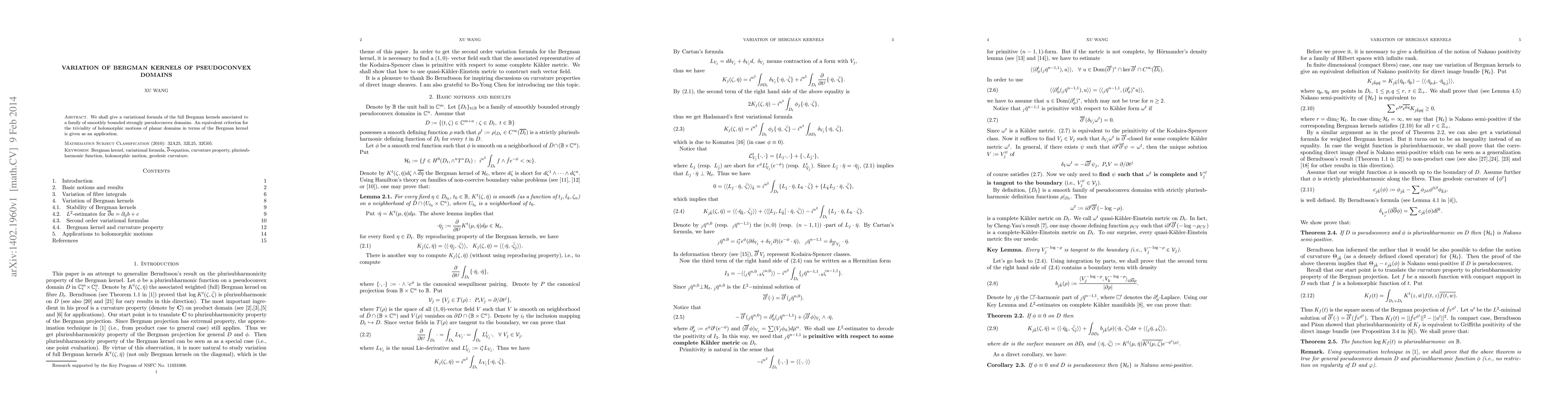 We shall give a variational formula of the full Bergman kernels associated to a family of smoothly bounded strongly pseudoconvex domains. An equivalent criterion for the triviality of holomorphic motions of planar domains in terms of the Bergman kernel is given as an application.