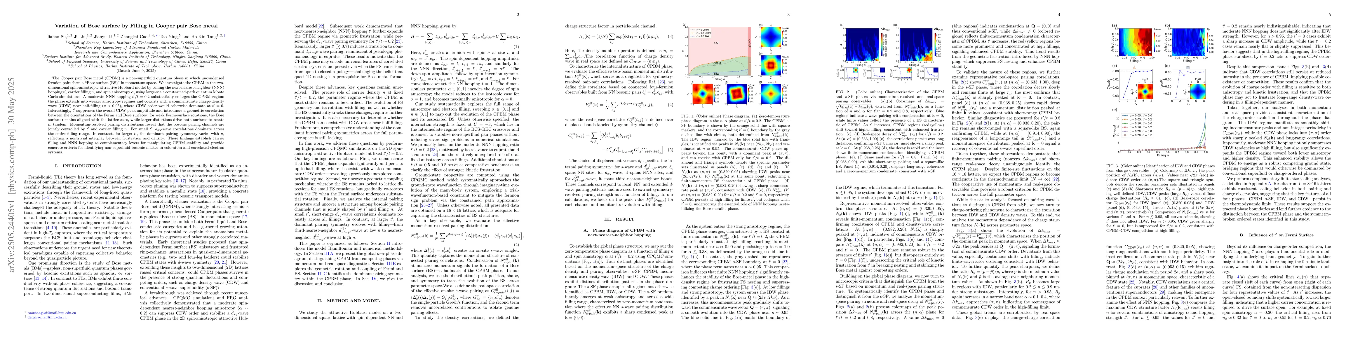 Researchers studied how changing the hopping between atoms affects the stability of a non-superfluid quantum phase called Cooper pair Bose metal, finding that moderate hopping and carrier filling can expand its region and create new correlations.