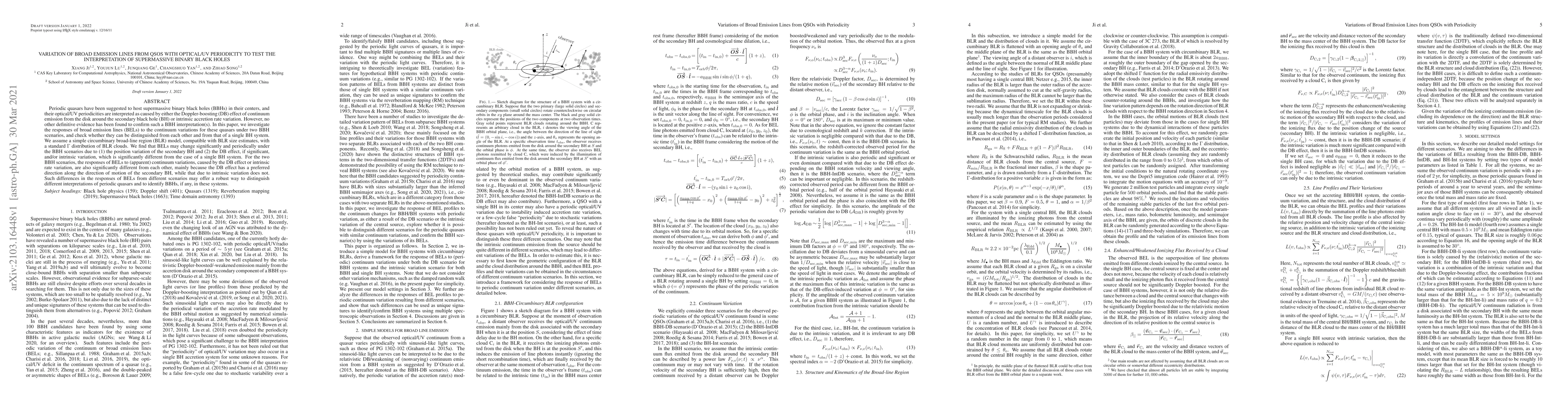 Periodic quasars have been suggested to host supermassive binary black holes (BBHs) in their centers, and their optical/UV periodicities are interpreted as caused by either the Doppler-boosting (DB) effect of continuum emission from the disk around the secondary black hole (BH) or intrinsic accretion rate variation. However, no other definitive evidence has been found to confirm such a BBH interpretation(s). In this paper, we investigate the responses of broad emission lines (BELs) to the continuum variations for these quasars under two BBH scenarios, and check whether they can be distinguished from each other and from that of a single BH system. We assume a simple circumbinary broad-line region (BLR) model, compatible with BLR size estimates, with a standard $\Gamma$ distribution of BLR clouds. We find that BELs may change significantly and periodically under the BBH scenarios due to (1) the position variation of the secondary BH and (2) the DB effect, if significant, and/or intrinsic variation, which is significantly different from the case of a single BH system. For the two BBH scenarios, the responses of BELs to (apparent) continuum variations, caused by the DB effect or intrinsic rate variation, are also significantly different from each other, mainly because the DB effect has a preferred direction along the direction of motion of the secondary BH, while that due to intrinsic variation does not. Such differences in the responses of BELs from different scenarios may offer a robust way to distinguish different interpretations of periodic quasars and to identify BBHs, if any, in these systems.