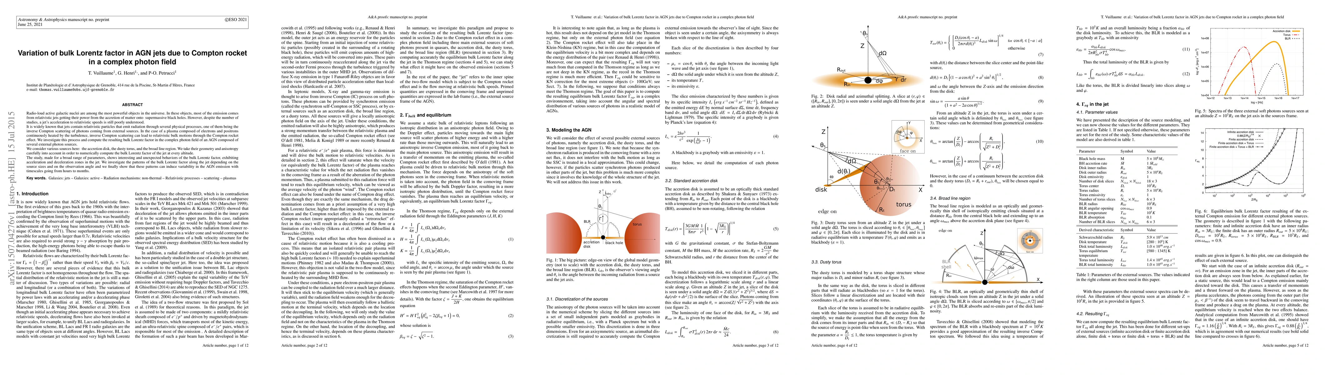 Radio-loud active galactic nuclei are among the most powerful objects in the universe. In these objects, most of the emission comes from relativistic jets getting their power from the accretion of matter onto supermassive black holes. However, despite the number of studies, a jet's acceleration to relativistic speeds is still poorly understood. It is widely known that jets contain relativistic particles that emit radiation through several physical processes, one of them being the inverse Compton scattering of photons coming from external sources. In the case of a plasma composed of electrons and positrons continuously heated by the turbulence, inverse Compton scattering can lead to relativistic bulk motions through the Compton rocket effect. We investigate this process and compute the resulting bulk Lorentz factor in the complex photon field of an AGN composed of several external photon sources. We consider various sources here: the accretion disk, the dusty torus, and the broad line region. We take their geometry and anisotropy carefully into account in order to numerically compute the bulk Lorentz factor of the jet at every altitude. The study, made for a broad range of parameters, shows interesting and unexpected behaviors of the bulk Lorentz factor, exhibiting acceleration and deceleration zones in the jet. We investigate the patterns of the bulk Lorentz factor along the jet depending on the source sizes and on the observation angle and we finally show that these patterns can induce variability in the AGN emission with timescales going from hours to months.