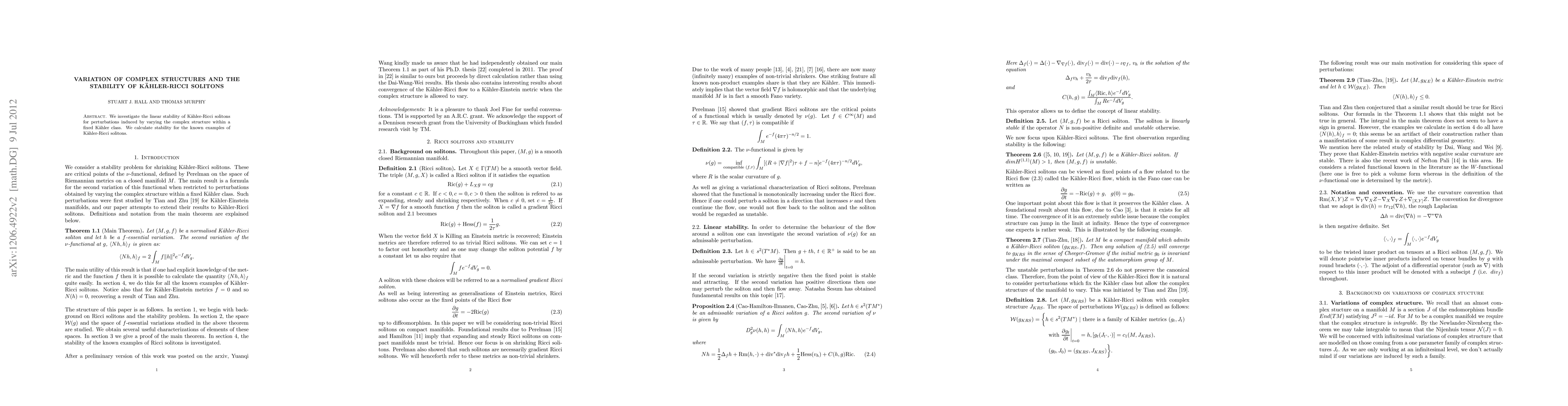 This paper examines the linear stability of Kähler-Ricci solitons under perturbations caused by altering the complex structure while keeping the Kähler class constant, and computes stability results for existing examples of Kähler-Ricci solitons.