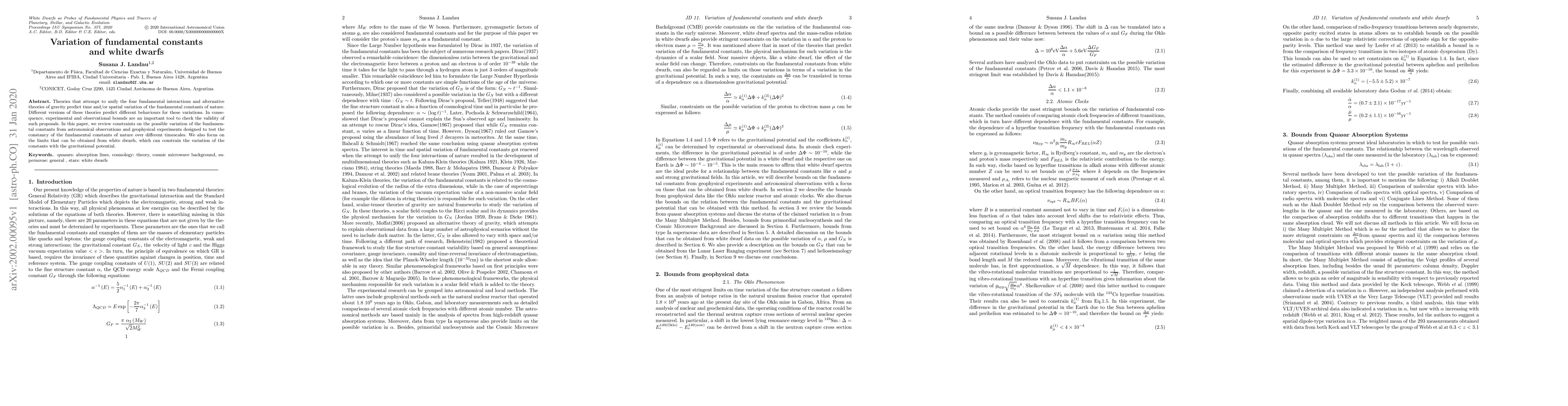 This paper reviews experimental and observational constraints on the variation of fundamental constants, emphasizing the role of white dwarfs in testing these variations, particularly in relation to gravitational potential. It highlights the importance of such constraints in evaluating alternative theories of gravity and unification.