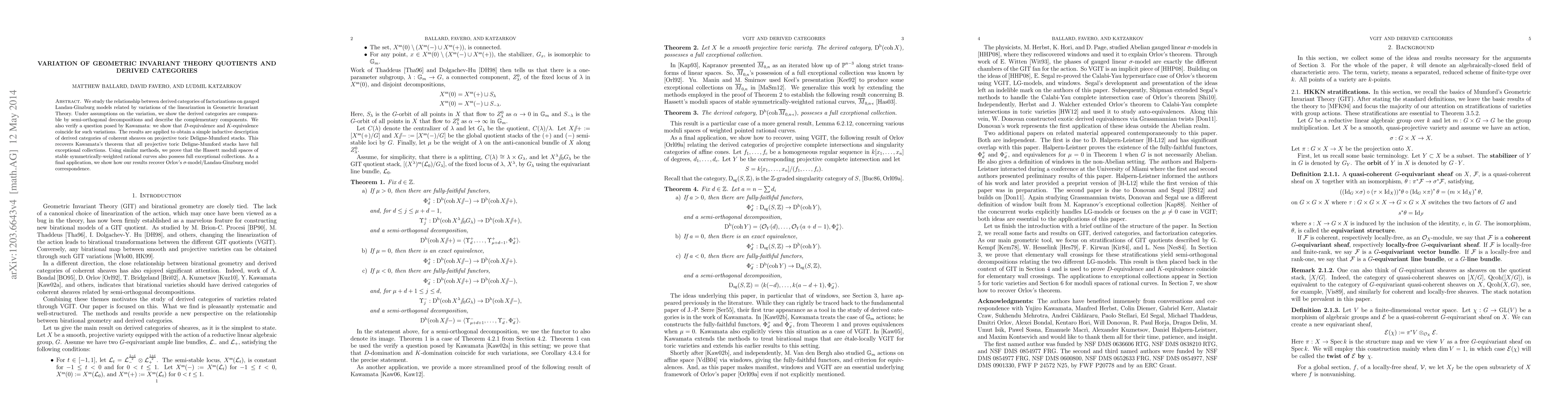 This paper investigates the comparative structure of derived categories in gauged Landau-Ginzburg models linked by variations in Geometric Invariant Theory, proving their equivalence under specific conditions and demonstrating applications to projective toric stacks and Hassett moduli spaces.