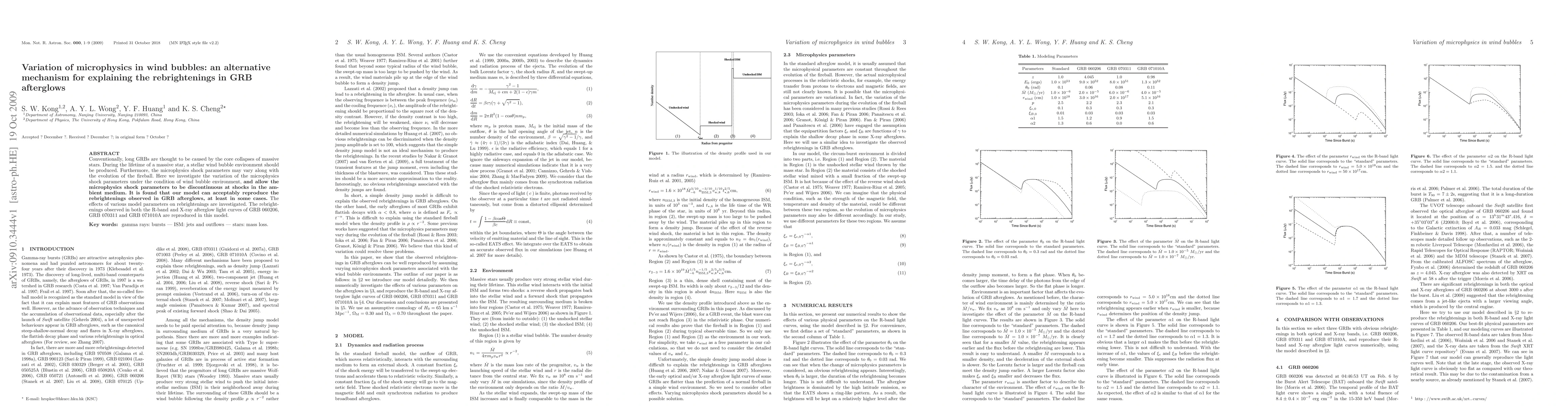 This paper proposes a model where variations in microphysics shock parameters within a wind bubble environment can explain the rebrightenings observed in long GRB afterglows, providing an alternative to conventional core collapse theories. The model successfully reproduces the rebrightenings in the R-band and X-ray light curves of specific GRBs.