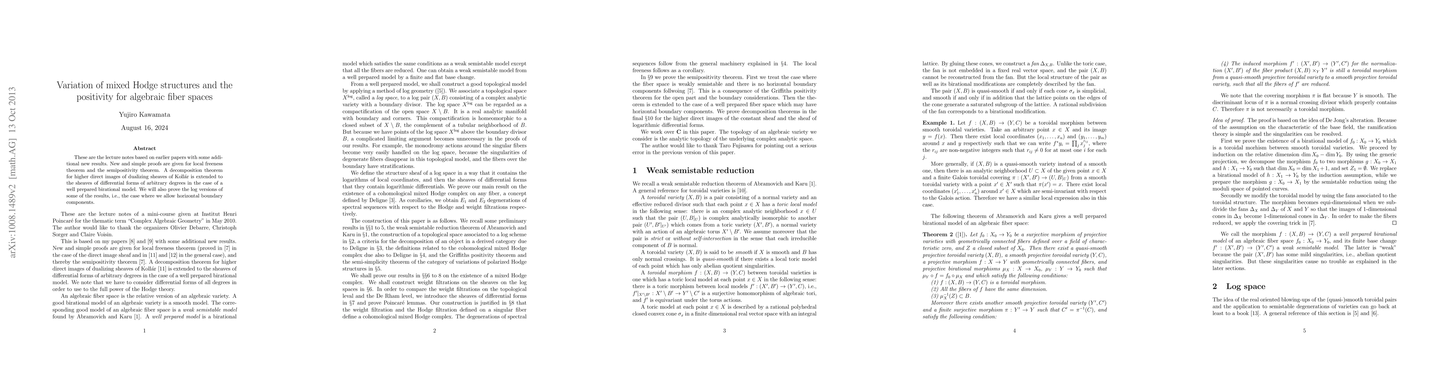 These are the lecture notes based on earlier papers with some additional new results. New and simple proofs are given for local freeness theorem and the semipositivity theorem. A decomposition theorem for higher direct images of dualizing sheaves of Koll\'ar is extended to the sheaves of differential forms of arbitrary degrees in the case of a well prepared birational model. We will also prove the log versions of some of the results, i.e., the case where we allow horizontal boundary components.
