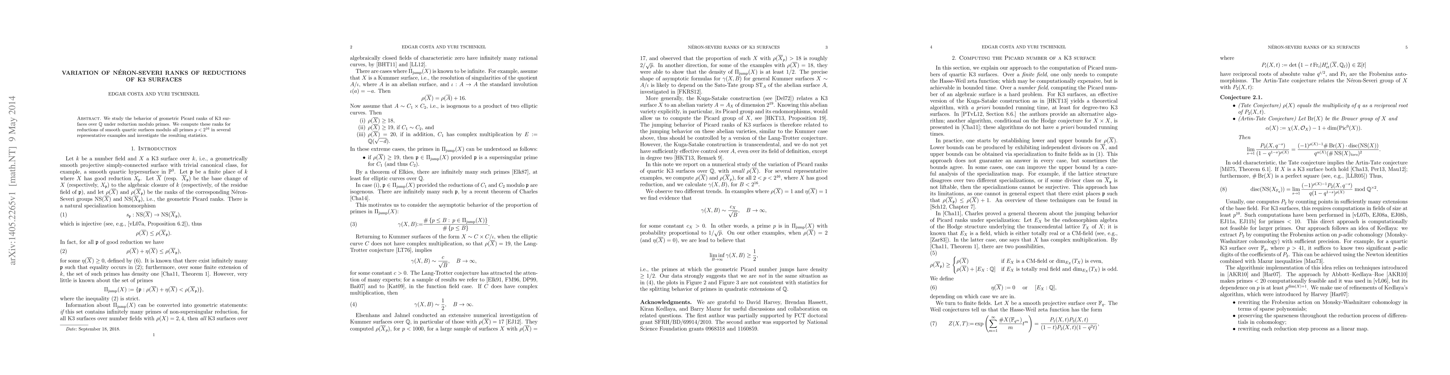 This paper examines how the geometric Picard ranks of K3 surfaces over rationals change under reduction modulo primes, computing these ranks for reductions of smooth quartic surfaces for primes less than 65536 and analyzing the statistical outcomes.