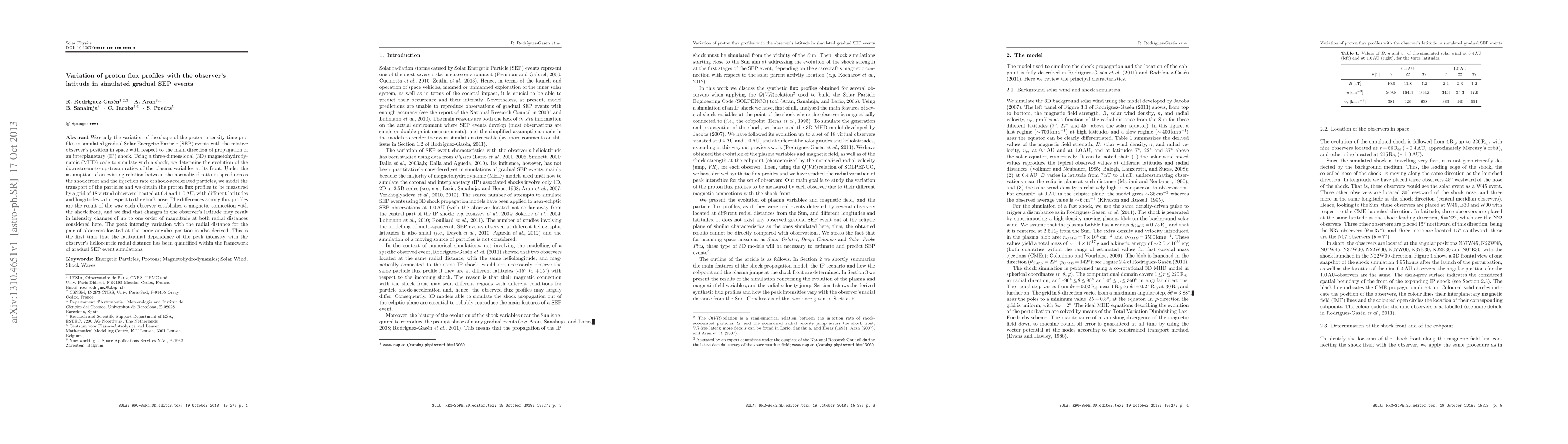 A study on simulated gradual Solar Energetic Particle events found that varying observer latitudes can result in proton flux intensity changes of up to one order of magnitude.