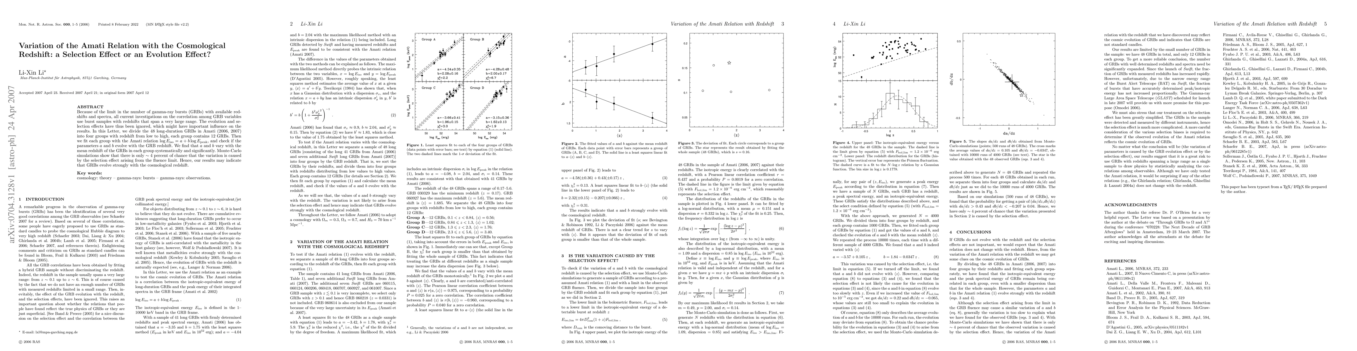 This paper investigates whether variations in the Amati relation for gamma-ray bursts (GRBs) are due to selection effects or evolutionary changes. The study finds significant variations in the Amati relation parameters with increasing redshift, suggesting strong evolutionary effects rather than selection bias.