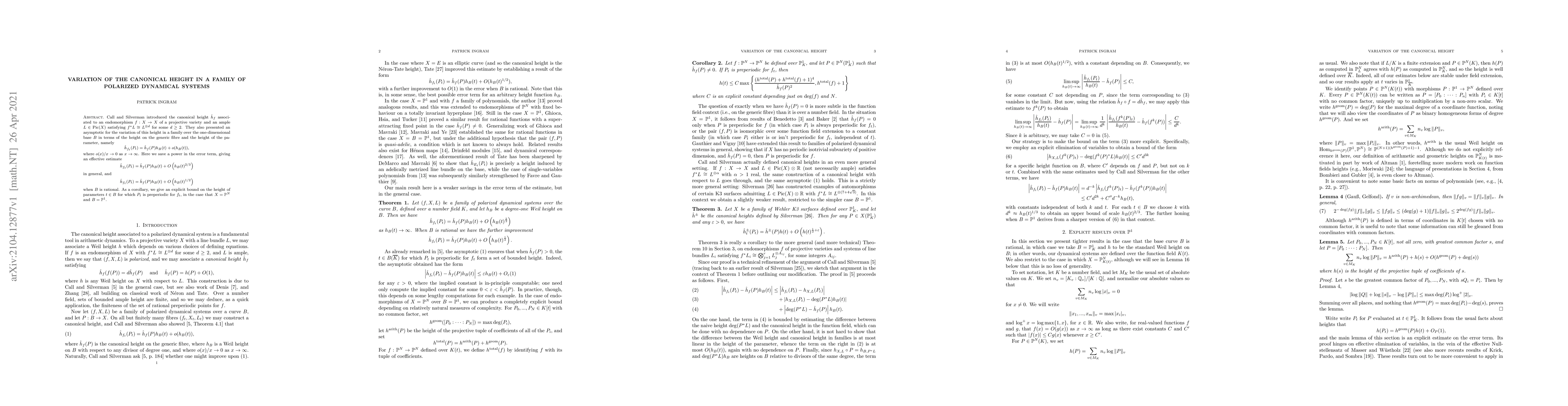 This paper refines the asymptotic estimate for the variation of canonical height in families of polarized dynamical systems, reducing the error term by a power. It also provides an explicit bound on the height of parameters leading to a finite orbit in endomorphisms of projective space over the projective line.