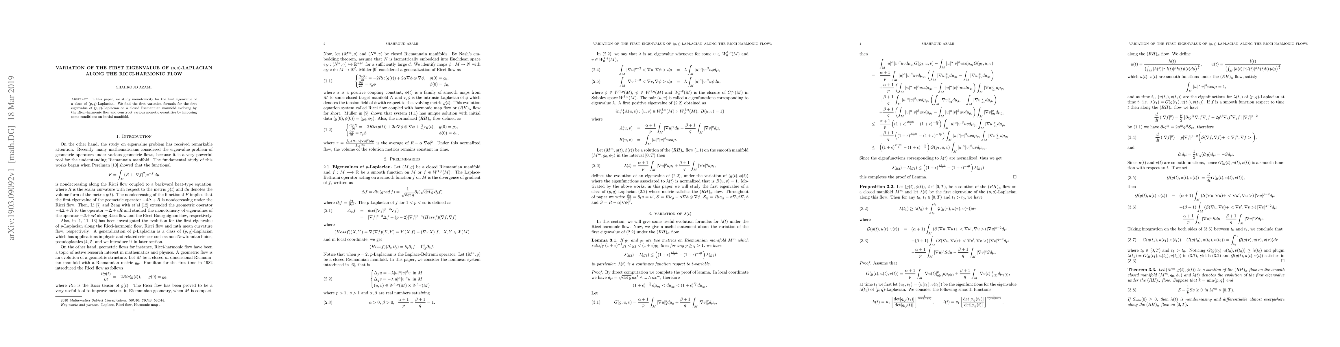 This paper investigates the monotonicity of the first eigenvalue for $(p,q)$-Laplacian under Ricci-harmonic flow. It derives a first variation formula for this eigenvalue and constructs monotonic quantities based on specific initial conditions of the manifold.