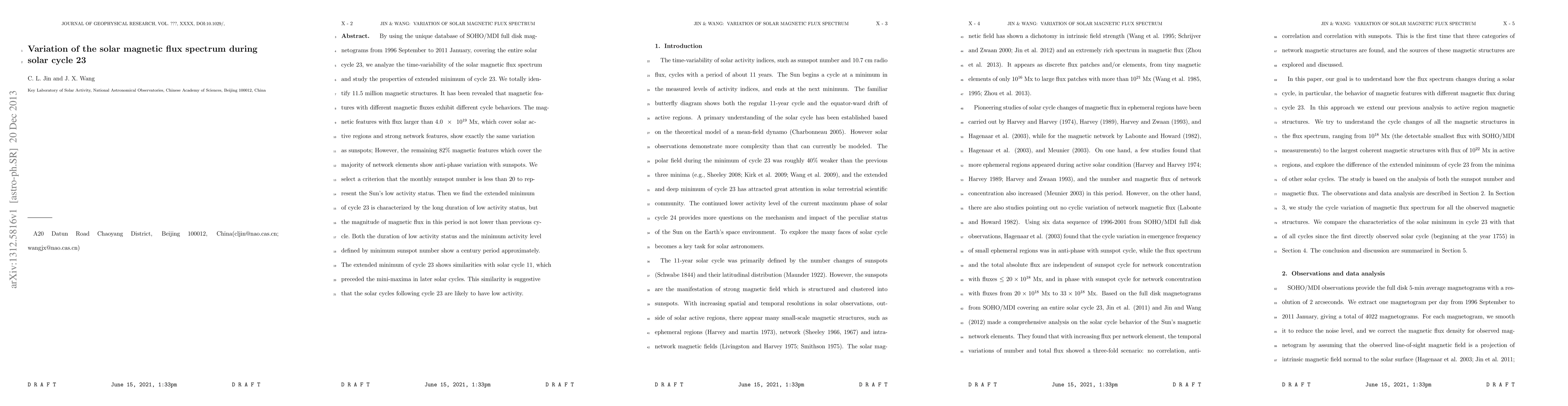 This study analyzes the solar magnetic flux spectrum during solar cycle 23 using SOHO/MDI magnetograms, identifying 11.5 million magnetic structures. It finds that while large magnetic features behave similarly to sunspots, smaller features show anti-phase variation, and the extended minimum of cycle 23 is marked by prolonged low activity without a significant decrease in magnetic flux.