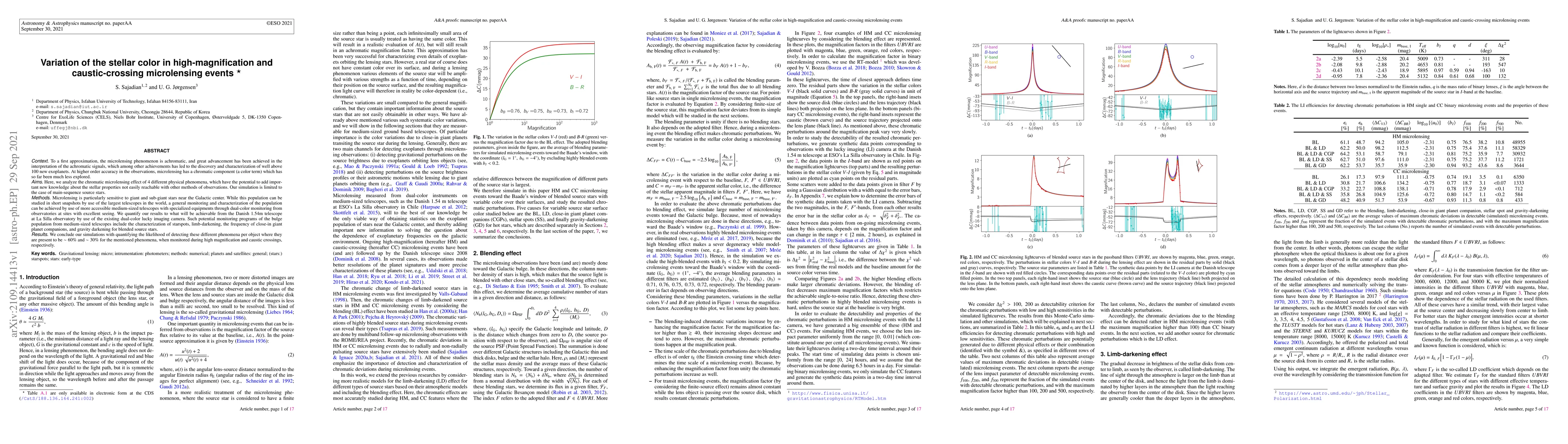 To a first approximation, the microlensing phenomenon is achromatic, and great advancement has been achieved in the interpretation of the achromatic signals, which among other achievements has led to the discovery and characterization of well above $100$ new exoplanets. At higher order accuracy in the observations, microlensing has a chromatic component (a color term) which has so far been much less explored. Here, we analyze the chromatic microlensing effect of $4$ different physical phenomena, which have the potential to add important new knowledge about the stellar properties not easily reachable with other methods of observations. Our simulation is limited to the case of main-sequence source stars. Microlensing is particularly sensitive to giant and sub-giant stars near the Galactic center. While this population can be studied in short snapshots by use of the largest telescopes in the world, a general monitoring and characterization of the population can be achieved by use of more accessible medium-sized telescopes with specialized equipments through dual-color monitoring from observatories at sites with excellent seeing. We quantify our results to what will be achievable from the Danish $1.54$m telescope at La Silla observatory by use of the existing dual-color lucky imaging camera. Such potential monitoring programs of the bulge population from medium-sized telescopes include the characterization of starspots, limb-darkening, the frequency of close-in giant planet companions, and gravity darkening for blended source stars. We conclude our simulations with quantifying the likelihood of detecting these different phenomena per object where they are present to be $\sim 60\%$ and $\sim 30\%$ for the mentioned phenomena, when monitored during high magnification and caustic crossings, respectively.
