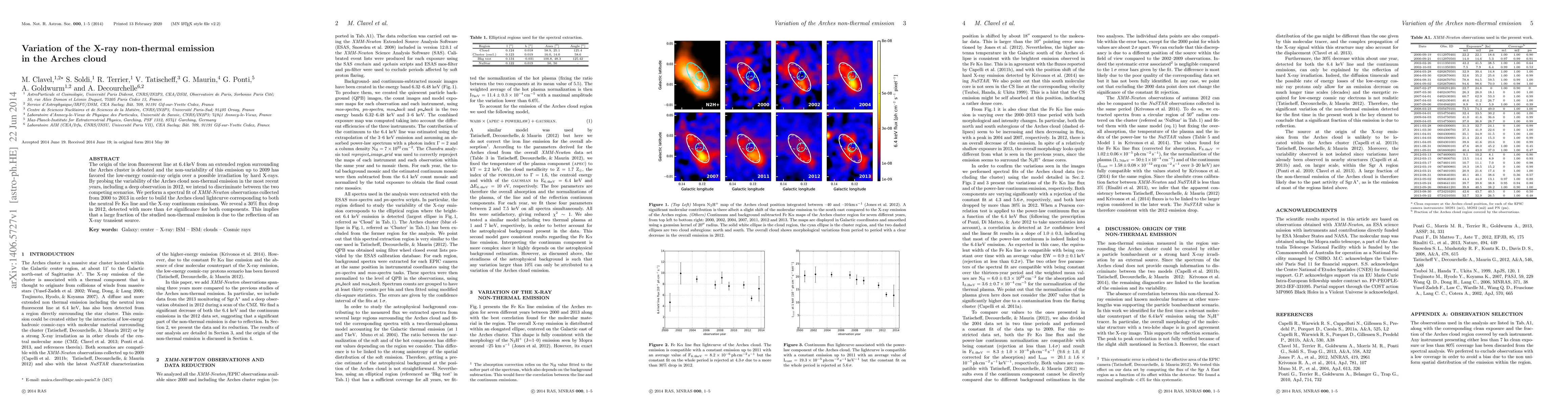 The Arches cloud's non-thermal X-ray emission shows a significant 30% flux drop in 2012, indicating variability and supporting the hypothesis of an X-ray transient source rather than low-energy cosmic rays. This discovery challenges previous assumptions of non-variability and suggests a dynamic origin for the emission.