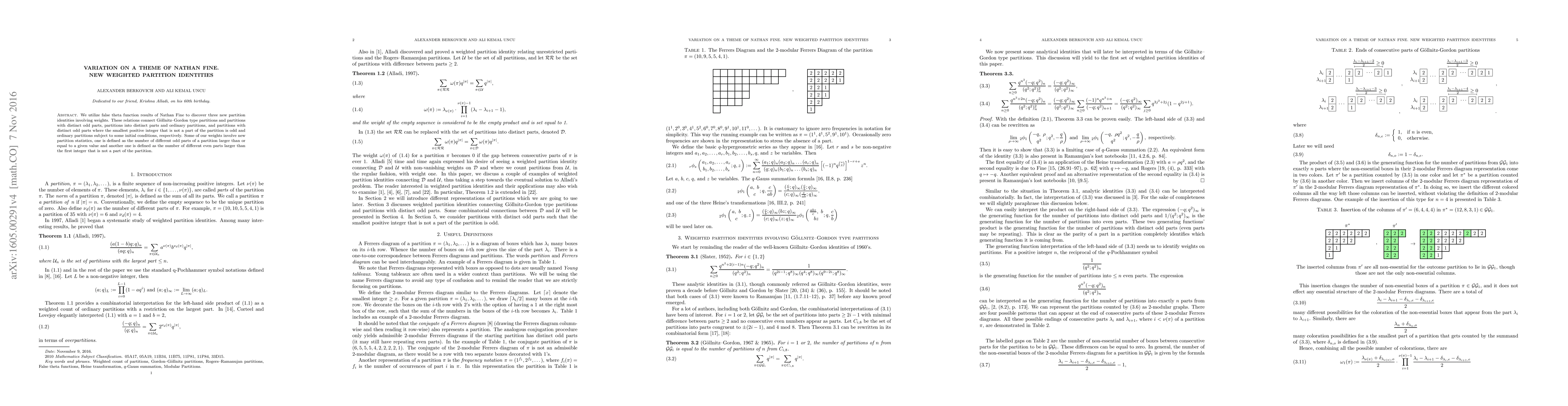This paper introduces three new partition identities using Nathan Fine's false theta function results, connecting various types of partitions with distinct weights. The weights include novel partition statistics, such as the count of different odd parts and even parts based on specific conditions.