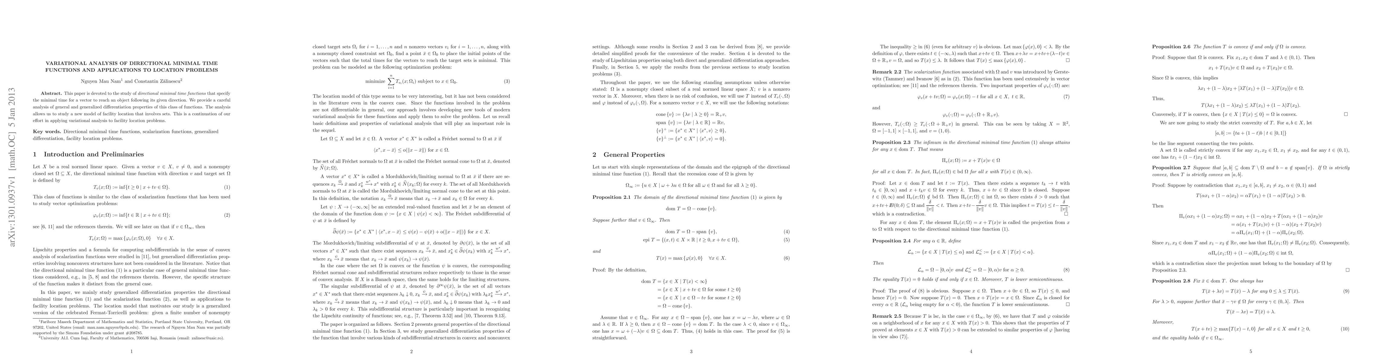 This paper analyzes directional minimal time functions, which determine the least time for a vector to reach an object in a given direction, and explores their differentiation properties. It applies this analysis to develop a new facility location model involving sets, extending variational analysis to facility location problems.