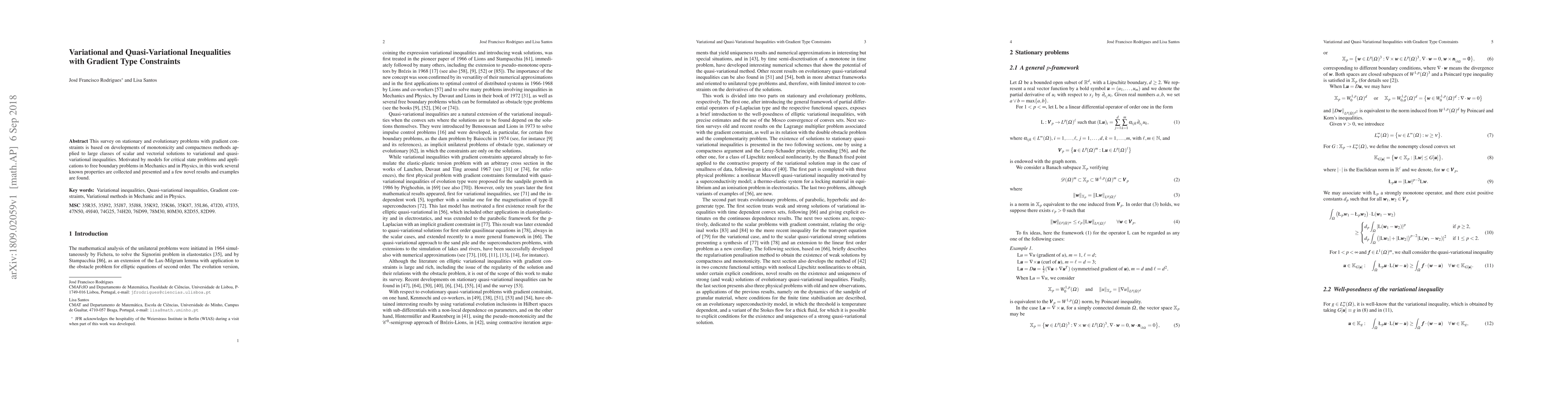 This survey explores variational and quasi-variational inequalities with gradient constraints, utilizing monotonicity and compactness methods for scalar and vectorial solutions. It compiles known properties and introduces novel results, motivated by critical state models and applications in Mechanics and Physics.