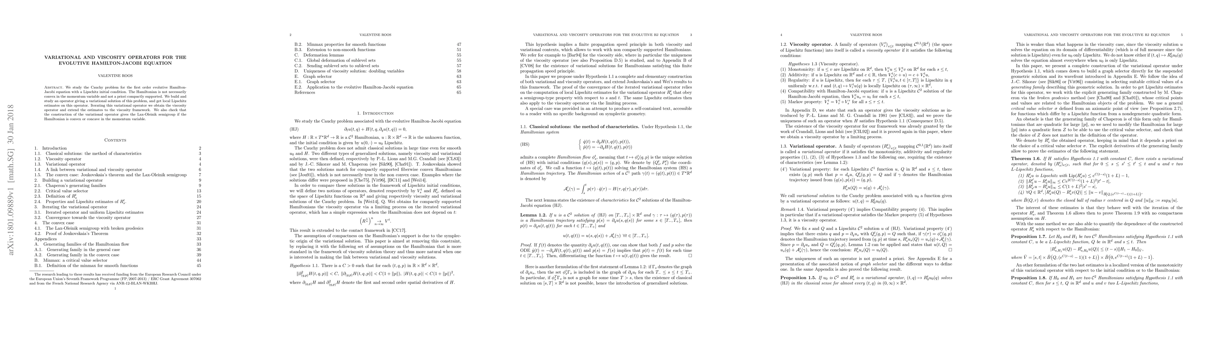 This paper develops a variational operator for solving the evolutive Hamilton-Jacobi equation with non-convex Hamiltonians and non-compactly supported initial conditions, achieving local Lipschitz estimates. It further extends these results to the viscosity operator framework.