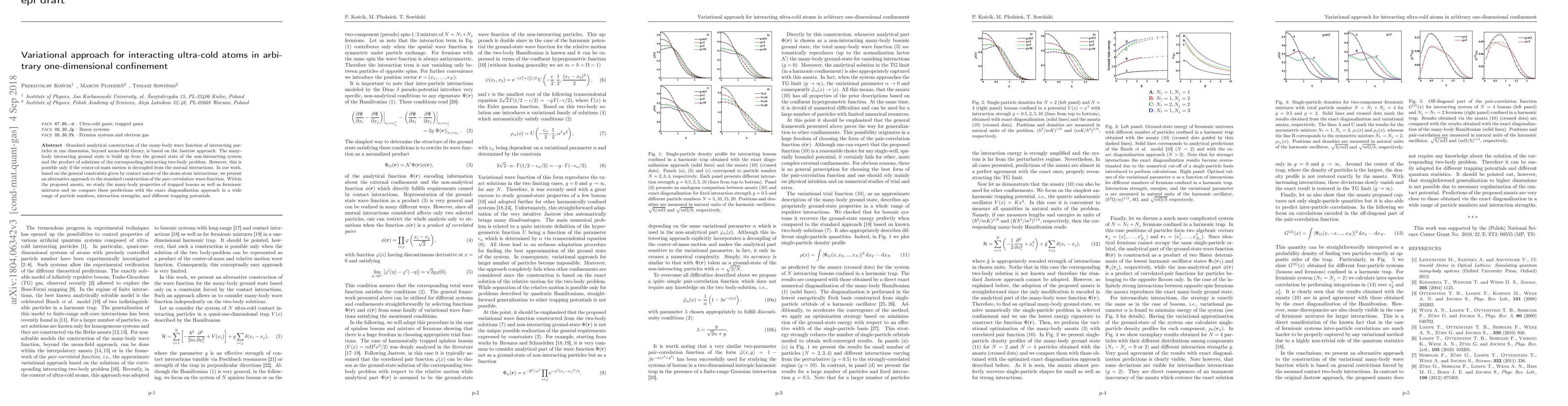 This paper proposes a variational approach to construct the many-body wave function for interacting ultra-cold atoms in one-dimensional confinement, moving beyond mean-field theory. The authors introduce an alternative method to the standard Jastrow ansatz, focusing on pair-correlations, and validate their model against exact diagonalization across various particle numbers and interaction strengths.