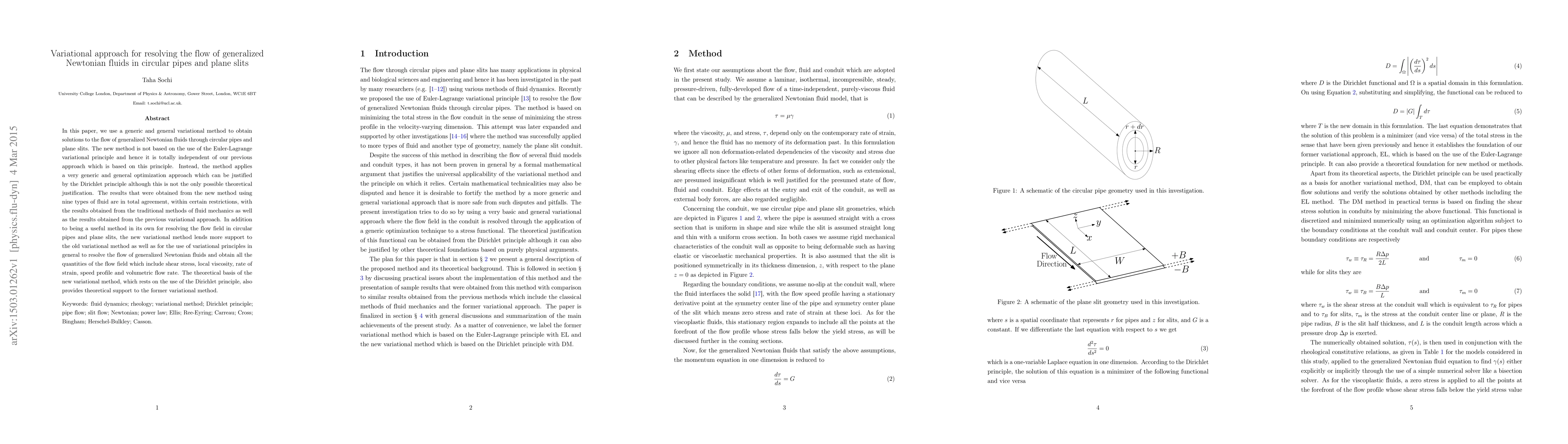 This paper introduces a new variational method for solving the flow of generalized Newtonian fluids in circular pipes and plane slits, independent of the traditional Euler-Lagrange approach. The results align with traditional methods and support the use of variational principles in fluid mechanics.