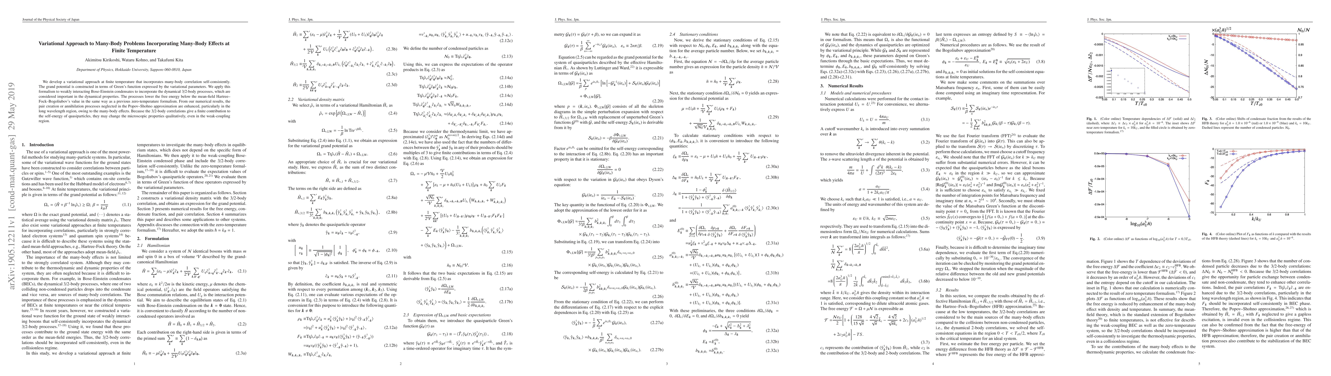 This paper develops a variational approach at finite temperature that incorporates many-body correlations self-consistently, applying it to weakly interacting Bose-Einstein condensates to account for dynamical 3/2-body processes, which significantly enhance pair creation or annihilation, especially in long wavelength regions, altering microscopic properties qualitatively.