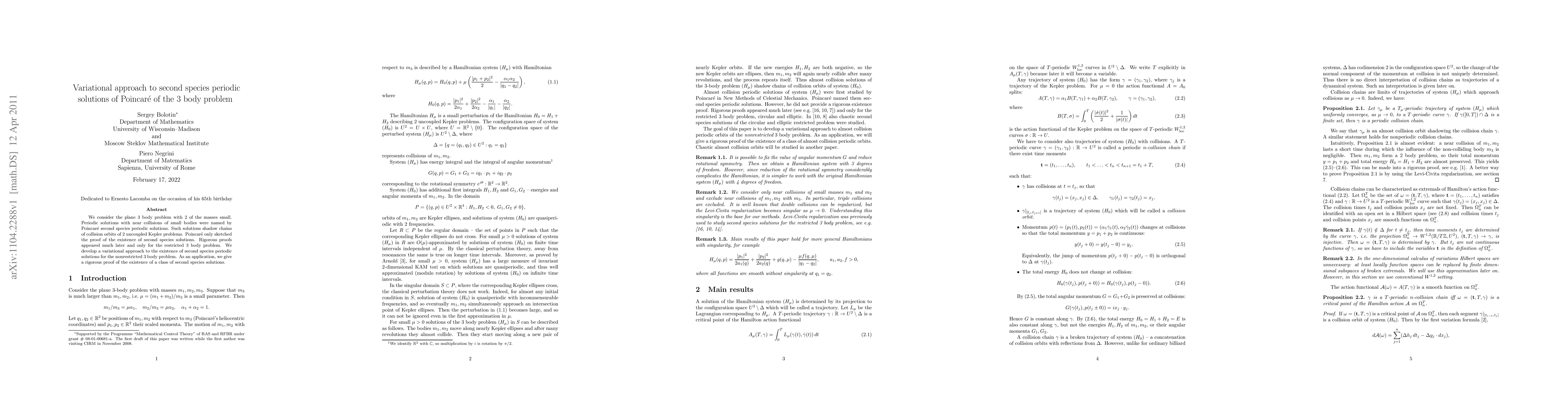 This paper develops a variational approach to prove the existence of second species periodic solutions in the nonrestricted 3 body problem, addressing a long-standing gap in Poincaré's original work and providing a rigorous proof for solutions that involve near collisions of small bodies.