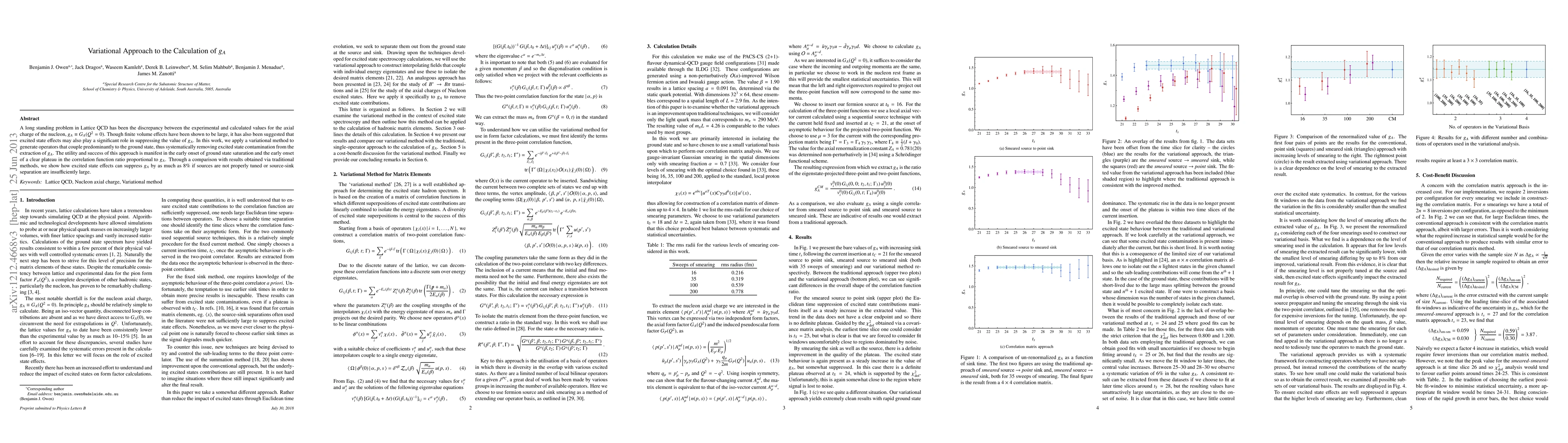 We present a lattice QCD calculation of the nucleon axial charge, gA, using a variational approach. After a brief outline of how the variational method is applied to the calculation of form factors, we present results for gA using this method. We find that ground state dominance is rapid, evident in the early onset of a clear plateau in the correlation function ratio proportional to gA. Through a comparison with results obtained via traditional methods, we show how excited state effects can suppress gA by as much as 8% if sources are not properly tuned.