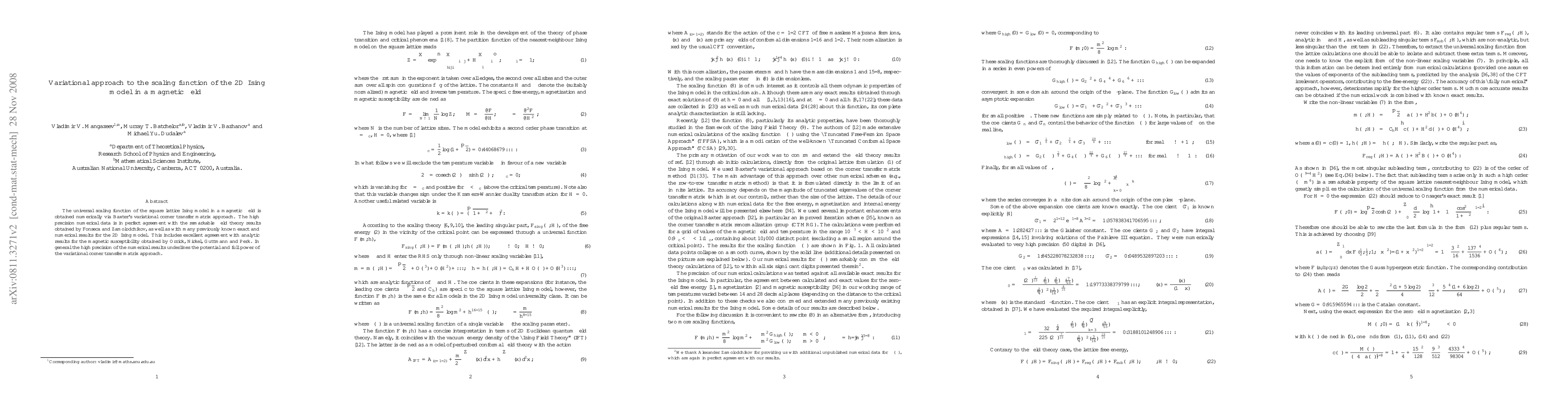 The paper presents a high precision numerical determination of the scaling function for the 2D Ising model using Baxter's variational corner transfer matrix approach, which aligns perfectly with both theoretical and previous numerical results. The study underscores the effectiveness of the variational approach in accurately capturing critical phenomena.