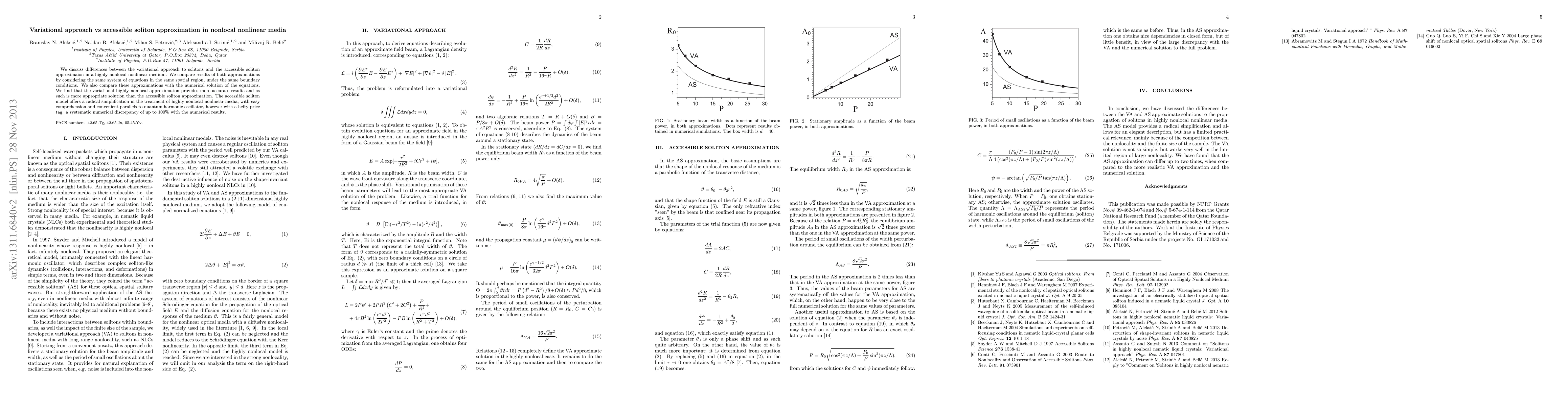This paper compares the variational approach and the accessible soliton approximation for solitons in nonlocal nonlinear media, finding that the variational method yields more accurate results despite the accessible soliton model's simplicity and conceptual parallels to quantum mechanics. The accessible soliton approximation, while easier to understand, shows significant discrepancies up to 100% compared to numerical solutions.