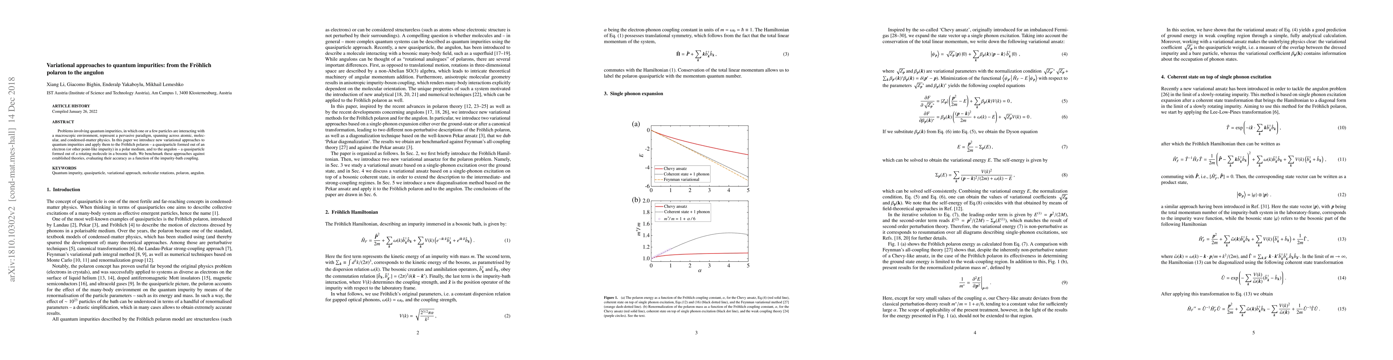 This paper introduces novel variational approaches to study quantum impurities, applying them to the Fröhlich polaron and the angulon. The study benchmarks these new methods against existing theories to assess their accuracy across varying impurity-bath coupling strengths.