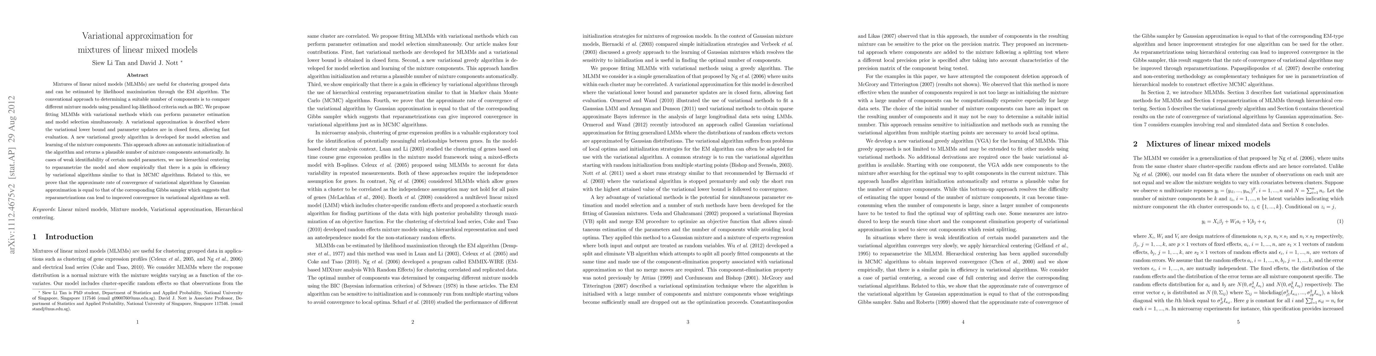 Researchers propose a new approach to estimating mixtures of linear mixed models using variational methods, allowing for simultaneous parameter estimation and model selection with improved efficiency.