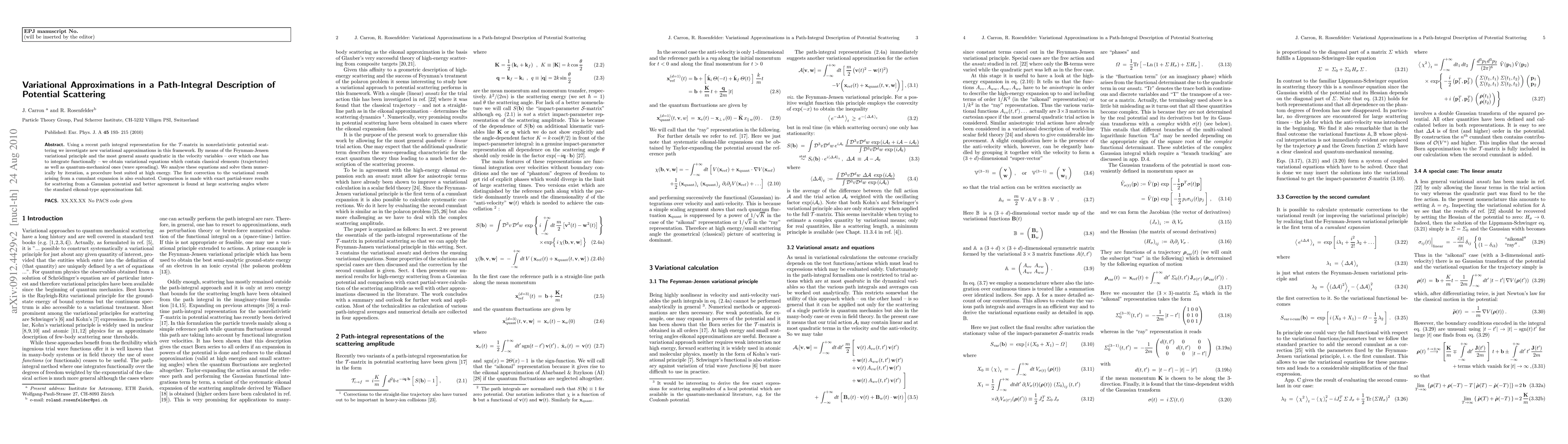 This paper explores new variational approximations for nonrelativistic potential scattering using a path integral representation of the T-matrix. It employs the Feynman-Jensen variational principle and a quadratic ansatz to derive equations that incorporate both classical and quantum elements, which are solved numerically, showing improved agreement with exact results at high energies and large scattering angles.