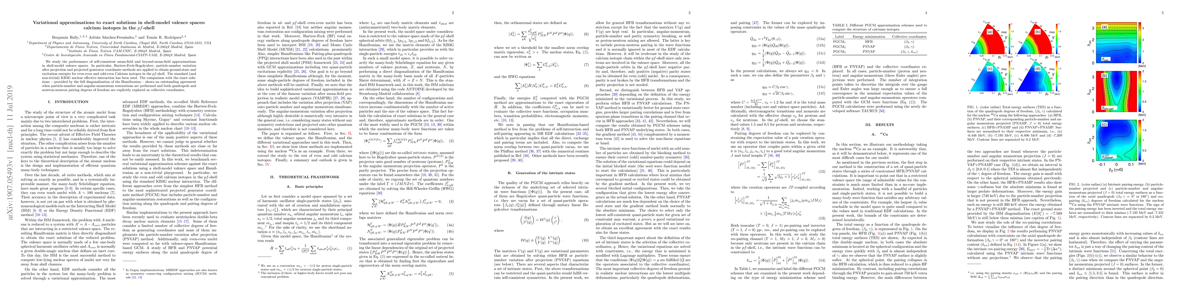 This paper evaluates various variational approximations for shell-model calculations in the pf-shell, focusing on calcium isotopes. It finds that methods like Hartree-Fock-Bogolyubov and projected generator coordinate methods yield accurate results when particle-number and angular-momentum restorations are applied, closely matching the exact solutions obtained via full diagonalization.