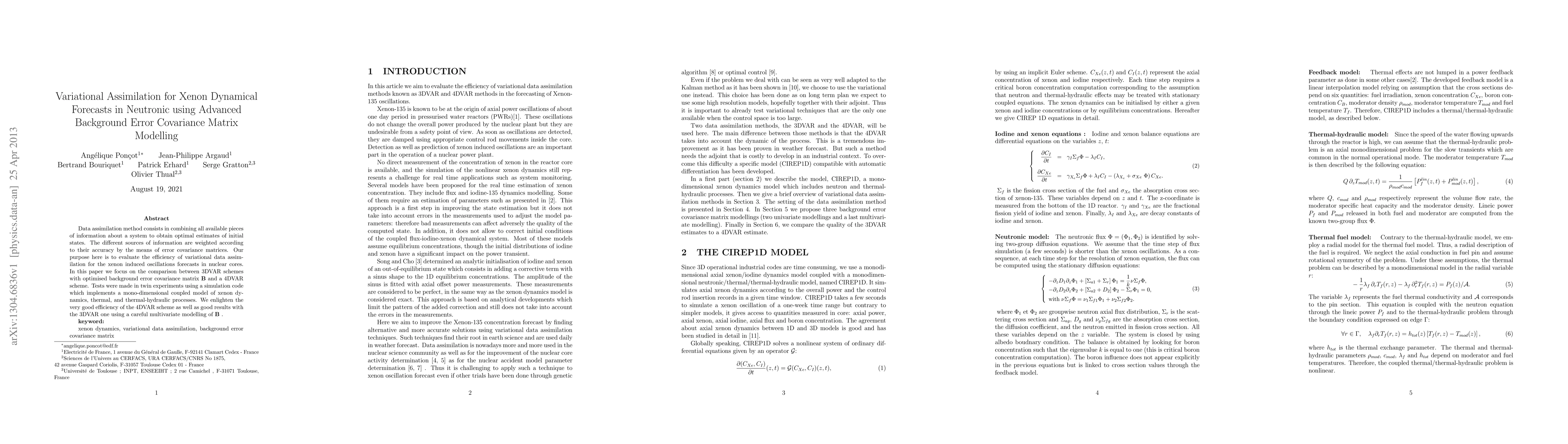 This paper evaluates variational data assimilation methods for predicting xenon-induced oscillations in nuclear reactors, comparing 3DVAR and 4DVAR schemes with optimized background error covariance matrices. Results from twin experiments show superior efficiency of the 4DVAR scheme, while 3DVAR also performs well with careful multivariate modeling.