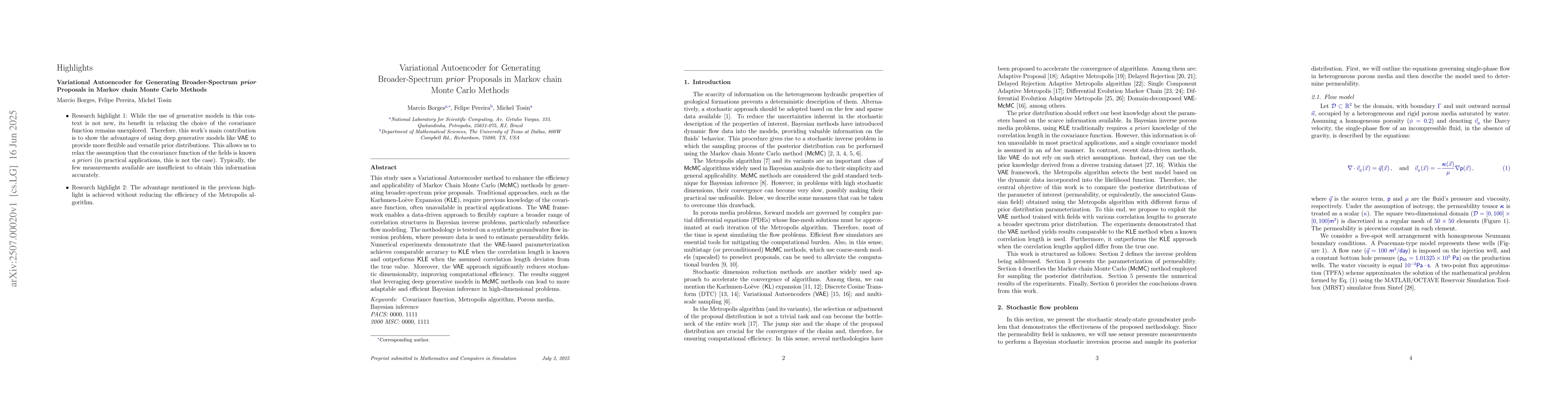 This study uses a Variational Autoencoder method to enhance the efficiency and applicability of Markov Chain Monte Carlo (McMC) methods by generating broader-spectrum prior proposals. Traditional approaches, such as the Karhunen-Lo\`eve Expansion (KLE), require previous knowledge of the covariance function, often unavailable in practical applications. The VAE framework enables a data-driven approach to flexibly capture a broader range of correlation structures in Bayesian inverse problems, particularly subsurface flow modeling. The methodology is tested on a synthetic groundwater flow inversion problem, where pressure data is used to estimate permeability fields. Numerical experiments demonstrate that the VAE-based parameterization achieves comparable accuracy to KLE when the correlation length is known and outperforms KLE when the assumed correlation length deviates from the true value. Moreover, the VAE approach significantly reduces stochastic dimensionality, improving computational efficiency. The results suggest that leveraging deep generative models in McMC methods can lead to more adaptable and efficient Bayesian inference in high-dimensional problems.