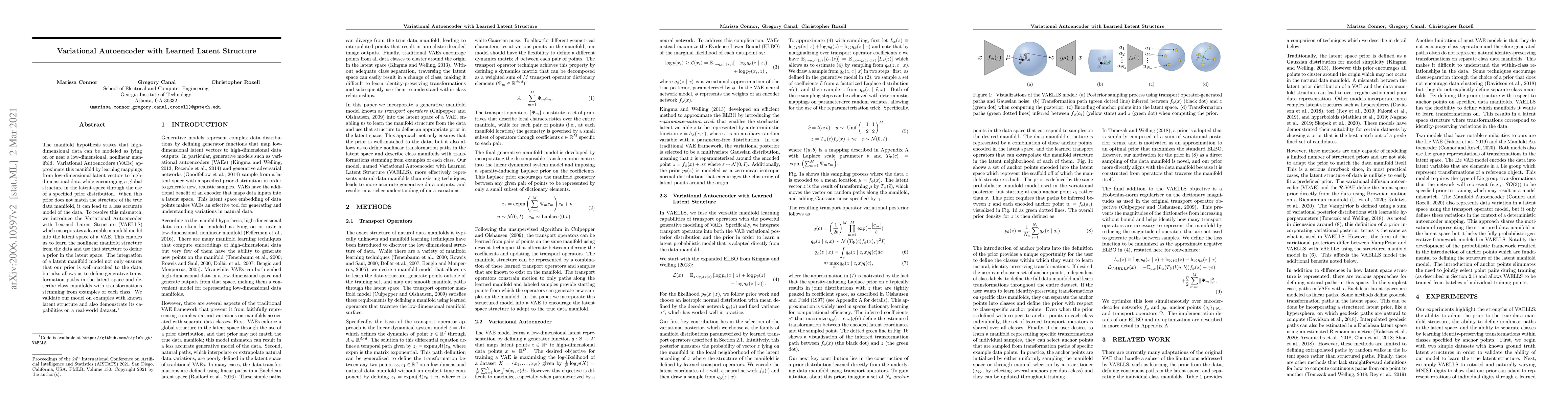 The paper proposes a Variational Autoencoder with Learned Latent Structure (VAELLS) that integrates a learnable manifold model into the VAE's latent space to better match the true data manifold, improving generative modeling and defining generative transformation paths. This approach is validated on both synthetic and real-world datasets.