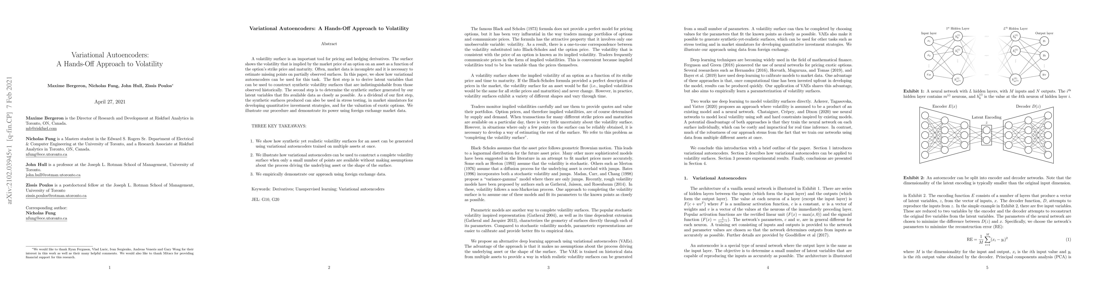 This paper utilizes variational autoencoders to estimate missing points on incomplete volatility surfaces, crucial for derivatives pricing and hedging. The method generates synthetic volatility surfaces that closely match historical data, aiding in stress testing and quantitative strategy development.