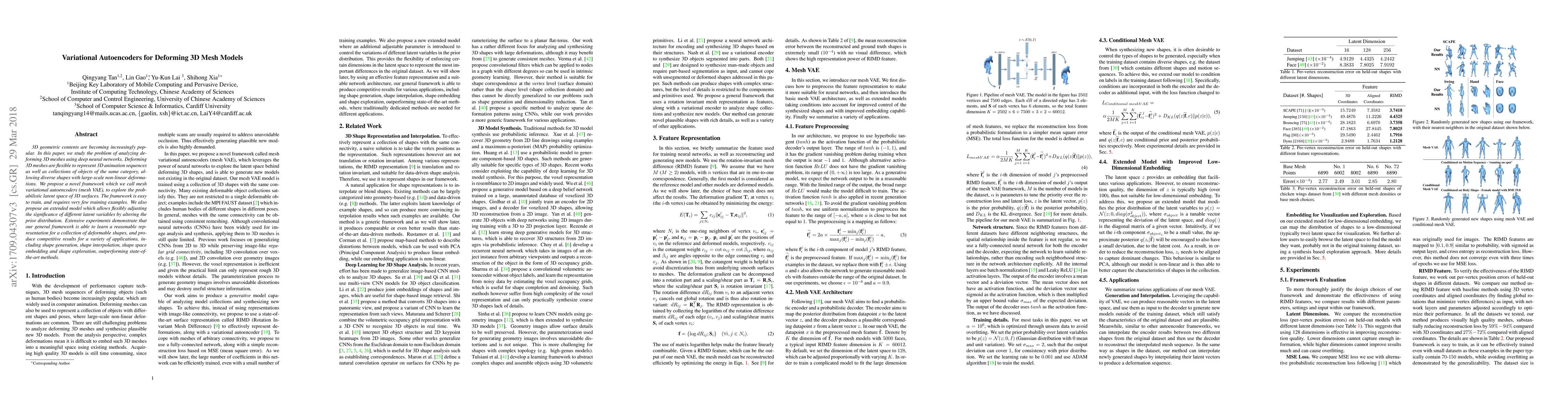 This paper introduces mesh variational autoencoders (mesh VAE) to analyze deforming 3D meshes, enabling flexible representation of 3D animation sequences and deformable objects. The proposed framework learns a probabilistic latent space for 3D surfaces, requiring few training examples, and outperforms state-of-the-art methods in shape generation, interpolation, embedding, and exploration.