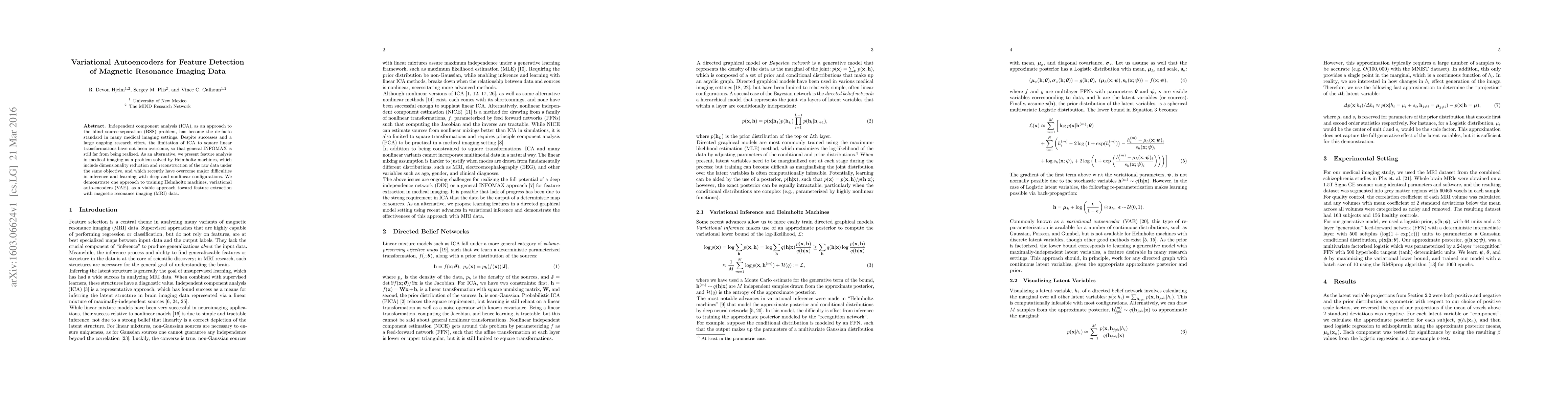 Variational autoencoders were used to train non-linear directed graphical models for extracting maximally independent features from MRI data.
