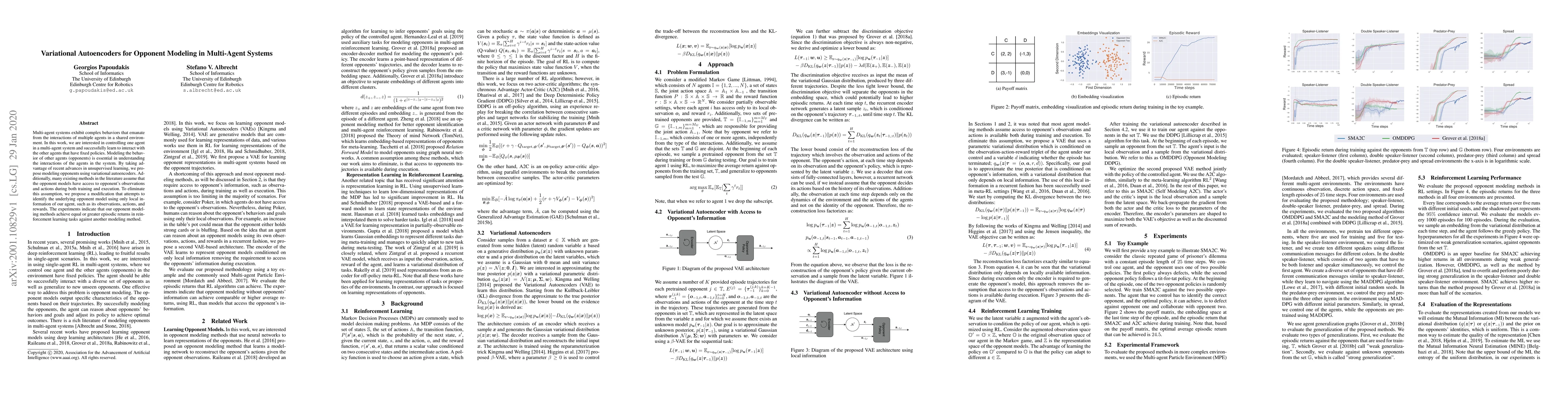 This paper proposes using variational autoencoders for opponent modeling in multi-agent systems, aiming to understand agent interactions without requiring access to opponents' observations and actions. The method achieves comparable or superior performance in reinforcement learning tasks compared to existing techniques.