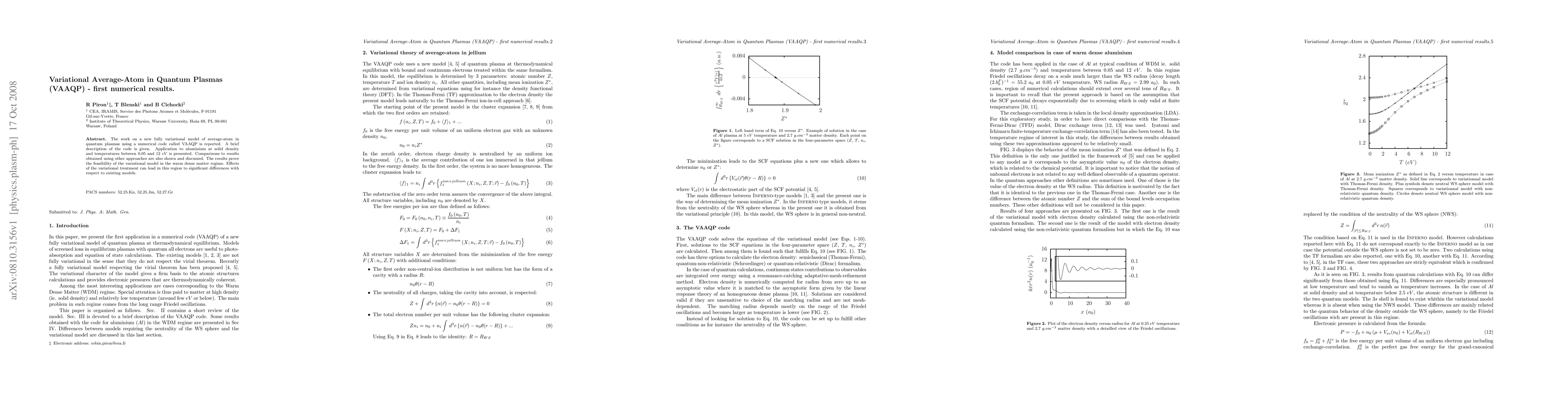The work on a new fully variational model of average-atom in quantum plasmas using a numerical code called VAAQP is reported. A brief description of the code is given. Application to aluminium at solid density and temperatures between 0.05 and 12 eV is presented. Comparisons to results obtained using other approaches are also shown and discussed. The results prove the feasibility of the variational model in the warm dense matter regime. Effects of the variational treatment can lead in this region to significant differences with respect to existing models.