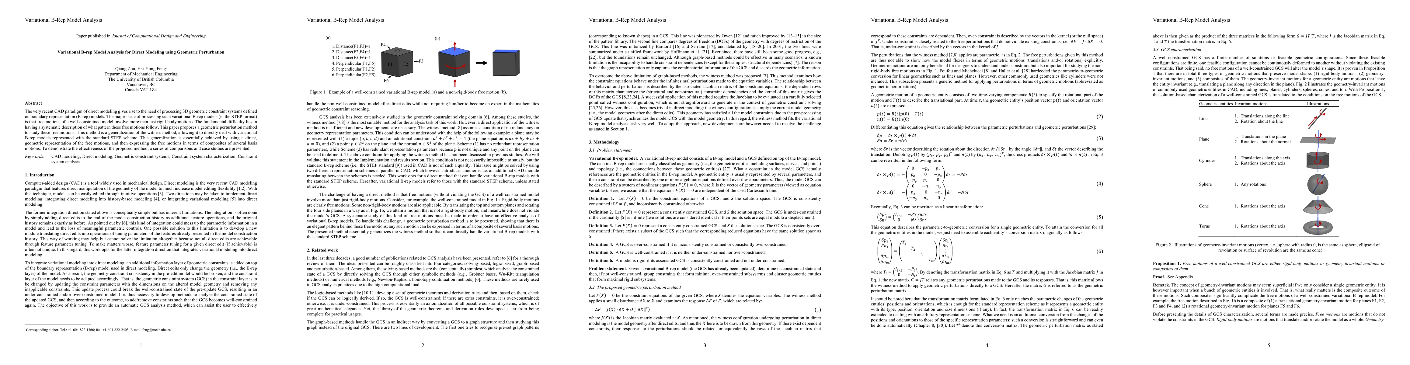 This paper proposes a geometric perturbation method to analyze free motions in variational B-rep models, generalizing the witness method for direct modeling in CAD. The method represents free motions as composites of basis motions, demonstrating its effectiveness through comparisons and case studies.