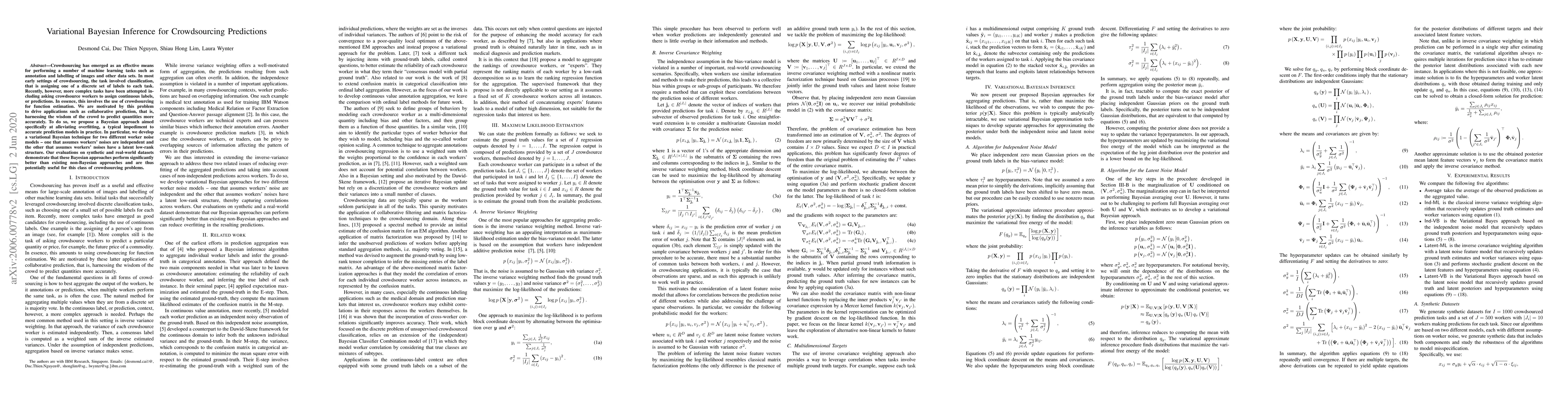 This paper proposes variational Bayesian inference techniques to improve crowdsourcing predictions for continuous labeling tasks. It develops two models to handle worker noise, showing superior performance over non-Bayesian methods in both synthetic and real-world datasets.