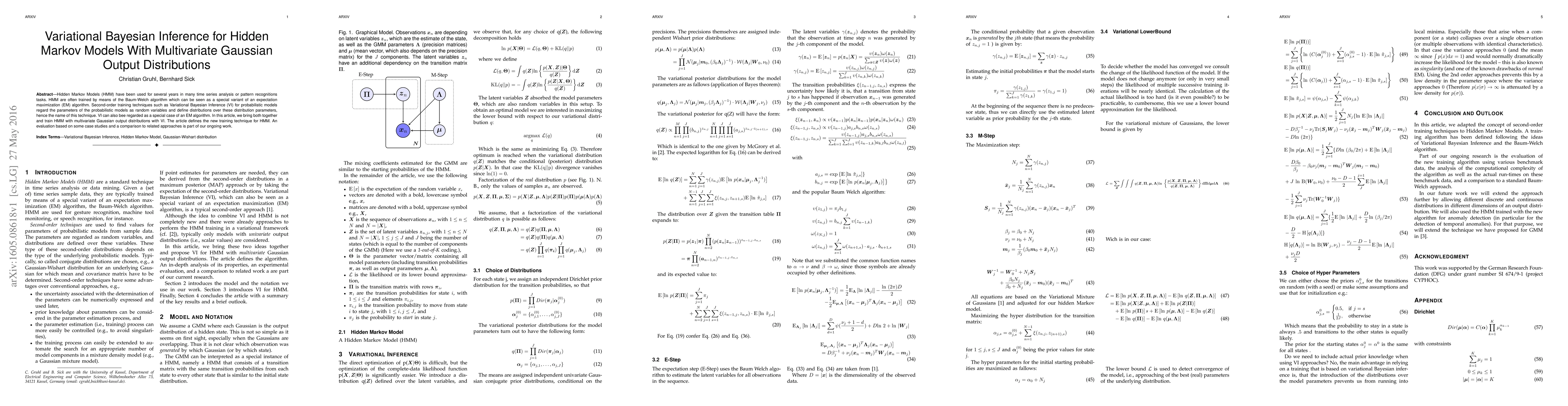 This paper introduces a Variational Bayesian Inference (VI) method to train Hidden Markov Models (HMM) with multivariate Gaussian output distributions, combining VI and the Baum-Welch algorithm for improved training. An evaluation of the proposed technique through case studies and comparisons to existing methods is underway.