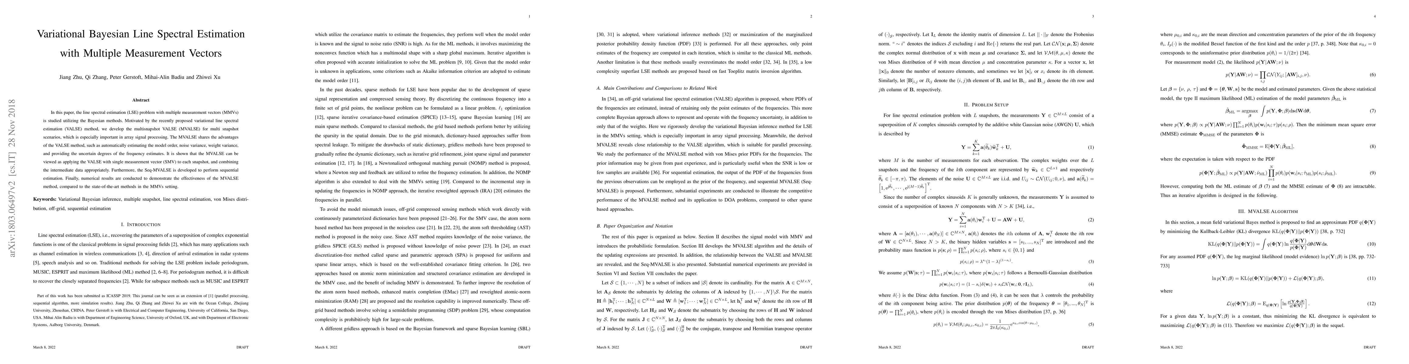This paper proposes a variational Bayesian method, MVALSE, for line spectral estimation in multi-measurement vector scenarios, enhancing the VALSE method by incorporating multiple snapshots. The MVALSE estimates model order, noise variance, and frequency uncertainty, and is shown to be effective compared to state-of-the-art methods.