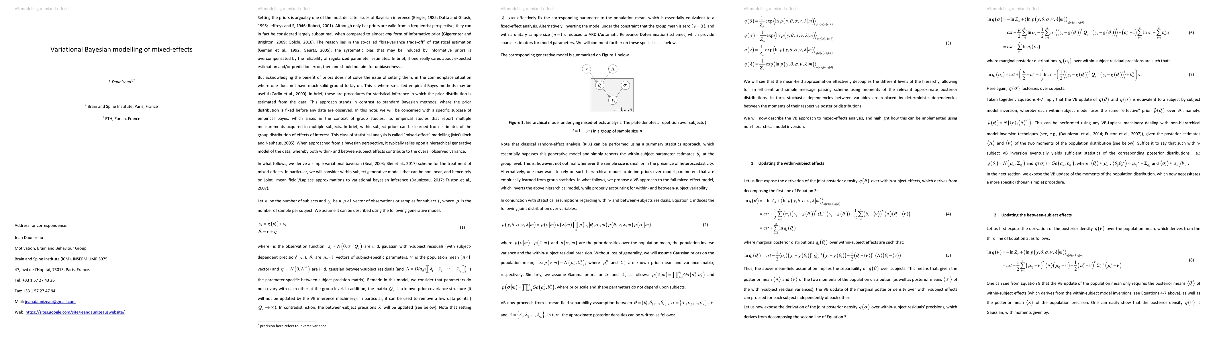 This note is concerned with an accurate and computationally efficient variational bayesian treatment of mixed-effects modelling. We focus on group studies, i.e. empirical studies that report multiple measurements acquired in multiple subjects. When approached from a bayesian perspective, such mixed-effects models typically rely upon a hierarchical generative model of the data, whereby both within- and between-subject effects contribute to the overall observed variance. The ensuing VB scheme can be used to assess statistical significance at the group level and/or to capture inter-individual differences. Alternatively, it can be seen as an adaptive regularization procedure, which iteratively learns the corresponding within-subject priors from estimates of the group distribution of effects of interest (cf. so-called "empirical bayes" approaches). We outline the mathematical derivation of the ensuing VB scheme, whose open-source implementation is available as part the VBA toolbox.